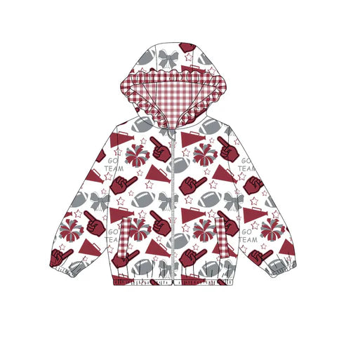 10.15 Custom Moq 8 Baby Girls Grey Black Football Team Zipper Bows Hoodies Tops