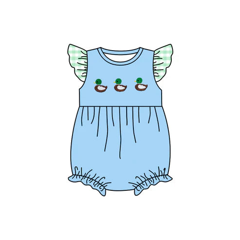 10.21 SR3266 Baby Girls Checked Flutter Sleeve Ducks Ruffle Rompers Preorder