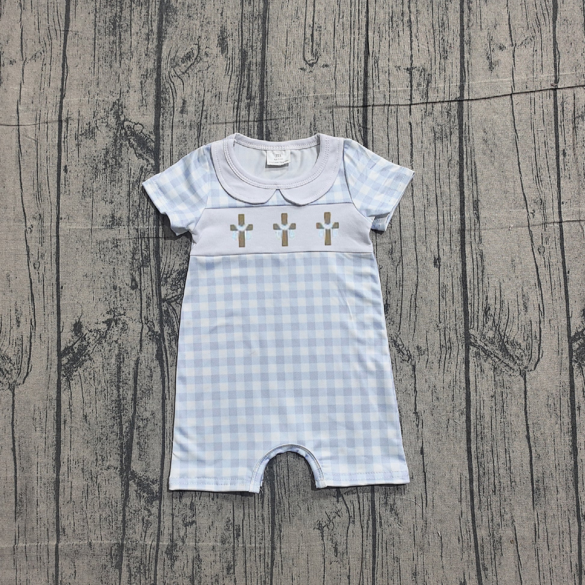 SR3758 pre-order baby boy clothes embroidery cross print toddler boy easter summer romper-26.1.10