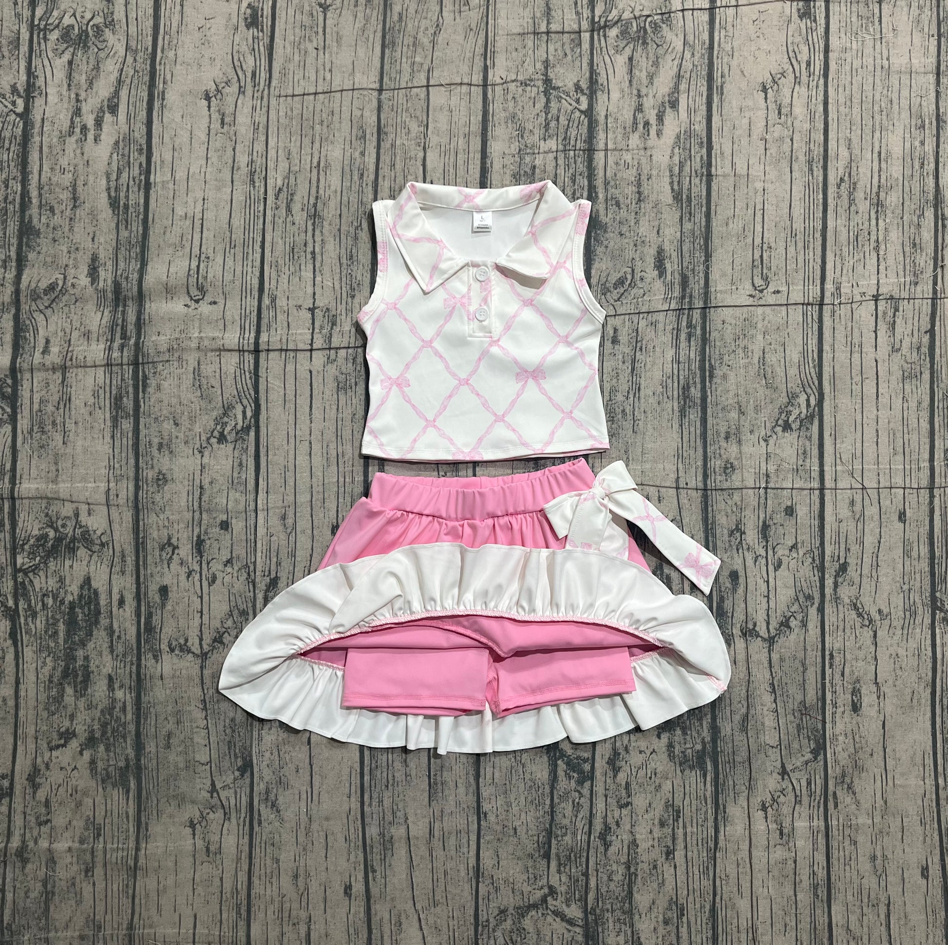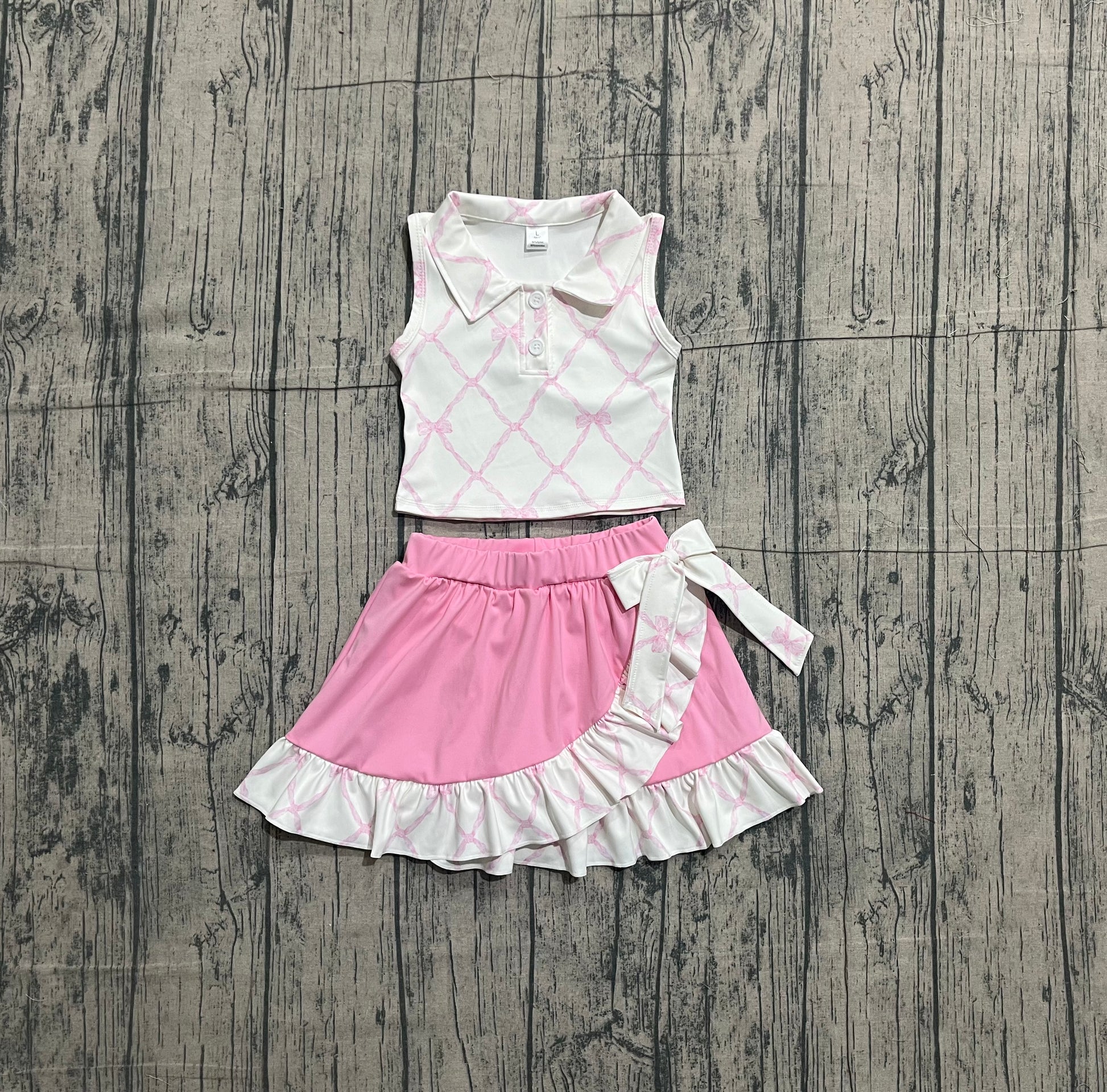 GSD3479 pre-order toddler girl clothes bows print girl yoga summer skirt set-26.1.7