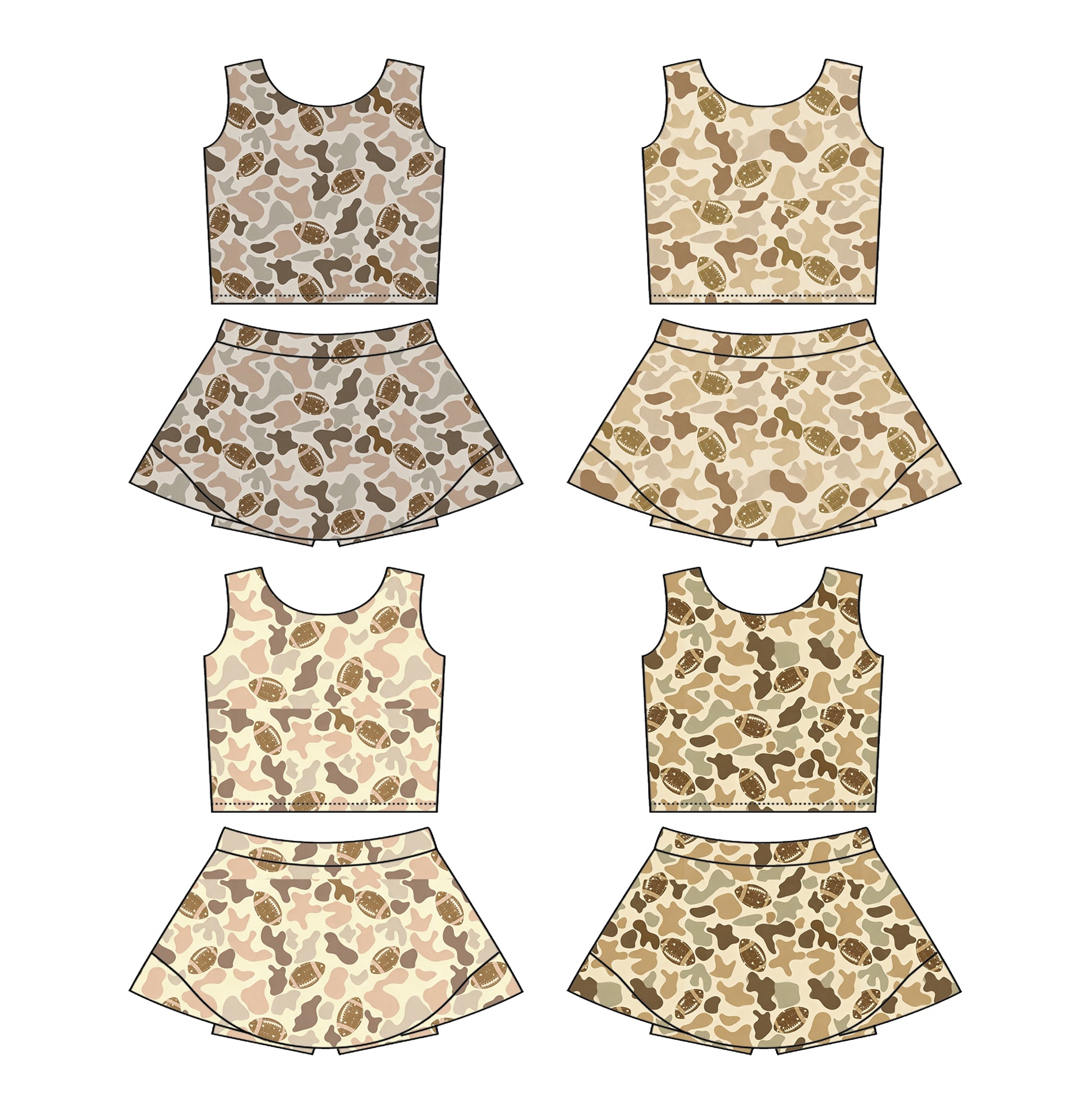 26.1.16 Custom (Moq 3 or 5) Sibling Baby Girl Sleeveless Camo Football Shorts Knee Length Dress
