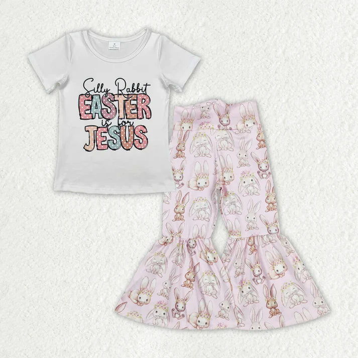 3.14 GT0898+P0387 Baby Girls Easter Jesus Short Sleeve Top Rabbits Bell Pants Clothes Set