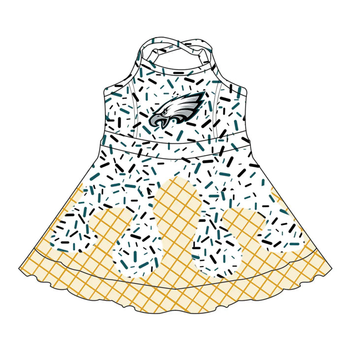 7.8 Custom Moq 3 Baby Girls Straps EAGLES Plaid Short Ruffle Team Knee Length Dresses