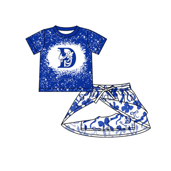7.9 Custom Moq 3 Baby Girls Short Sleeves Hornets Top Bows Skorts Team Sets