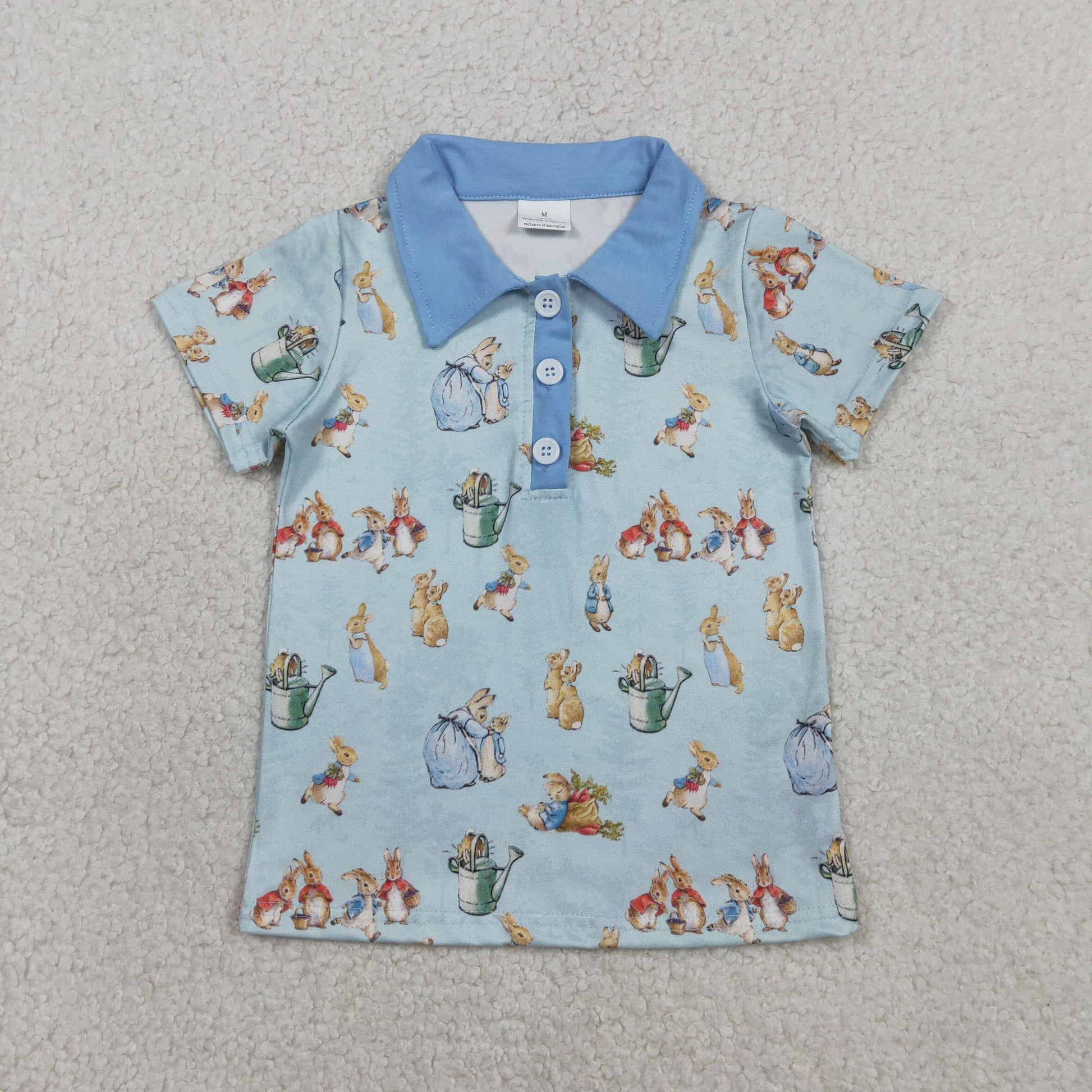 BT1665 Kids Baby Boy Short Sleeve Rabbits Easter Button Polo Shirts Top