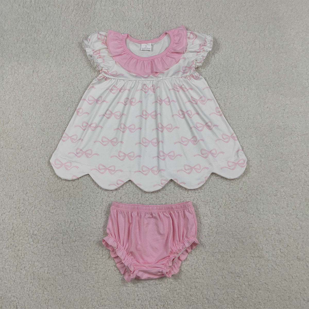 GBO0501 Baby Girl Pink Bows Collar Scallop Tunic Bummies Clothes Sets