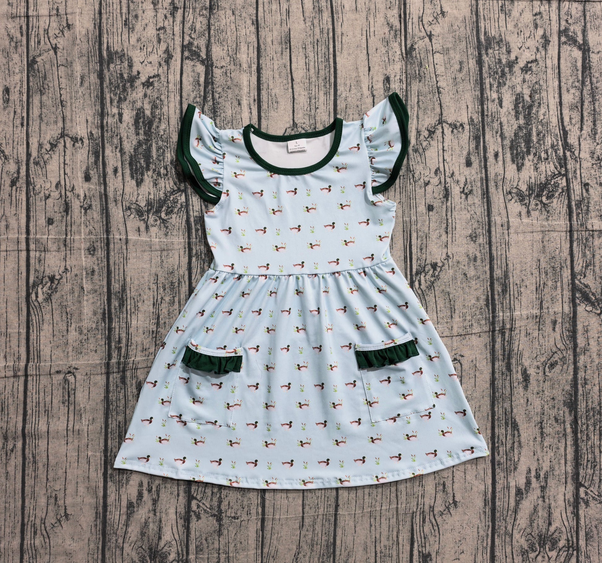 GSD3679 Preorder IRL Baby Girl Flutter Sleeve Ducks Pockets Hunting Knee Length Dress
