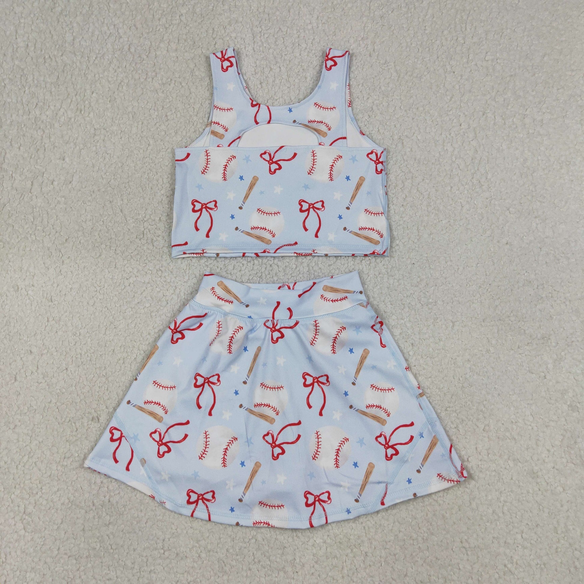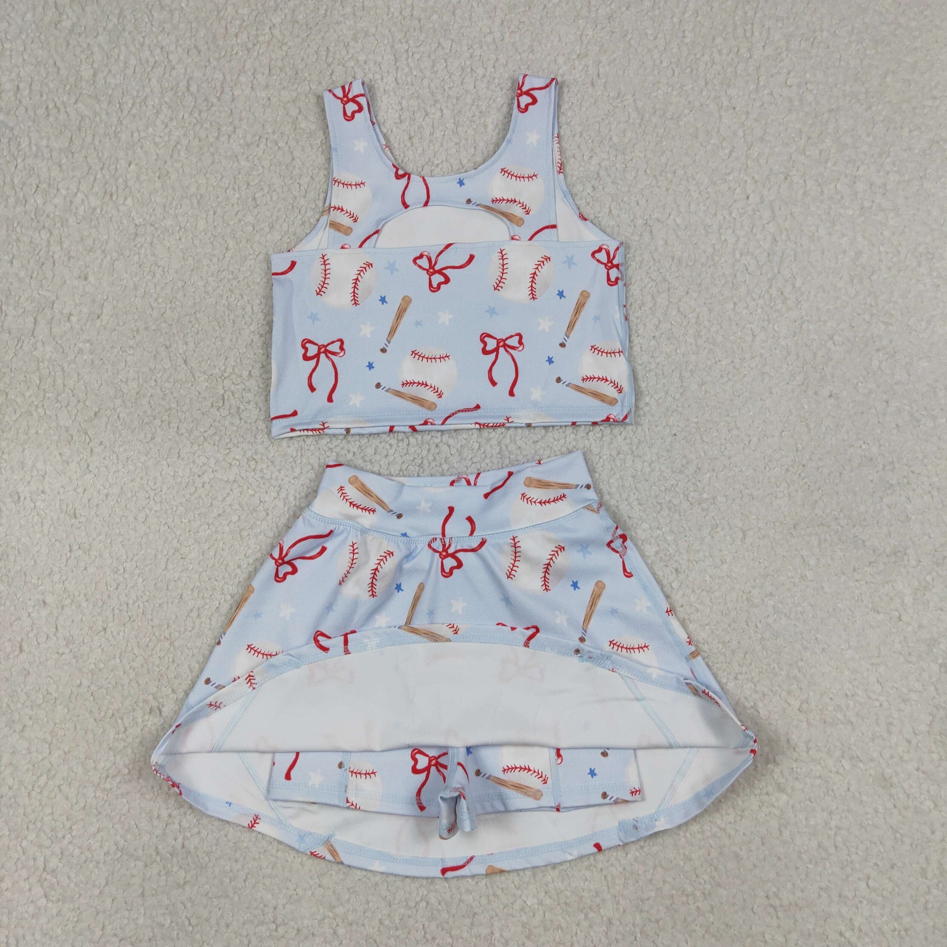 GSD3835 Kids Baby Girls Bows Baseballs Vests Top Skirt Short Team Yoga Active Clothes Set