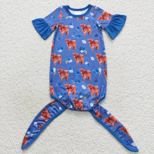 NB0019 Alpine cow flower navy blue lace short-sleeved nightgown