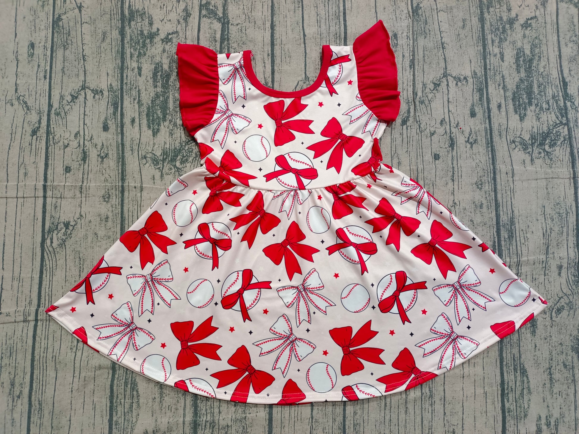 Pre-order no moq GSD3456 pre-order baby girl clothes bow red flying sleeve summer dress-26.1.20