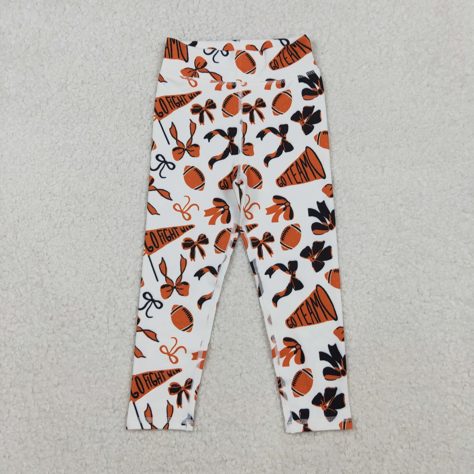 RTS NO MOQ(In Stock) Baby Girls orange Bows Footballs Go Team Yoga Active Legging Pants