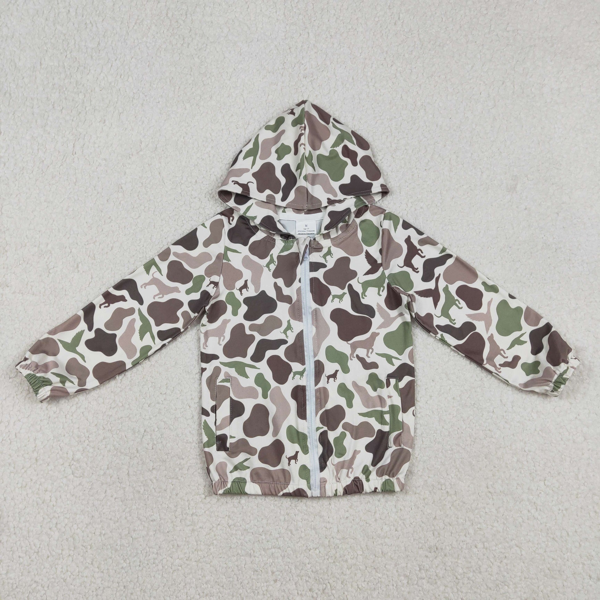 RTS NO MOQ(In Stock) Duck and puppy camouflage hooded zip-up long-sleeved top
