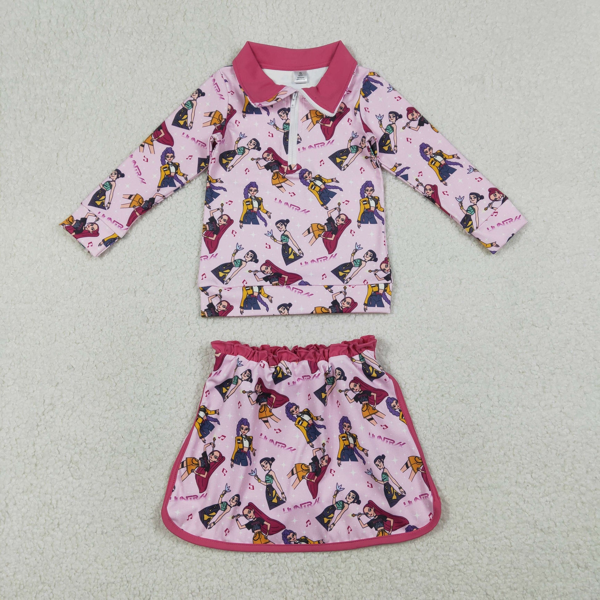 12/18m-14/16t RTS NO MOQ(In Stock) GLD1500 Kpop Music Rose Red Zipper Long-Sleeved Midi Skirt Yoga Set