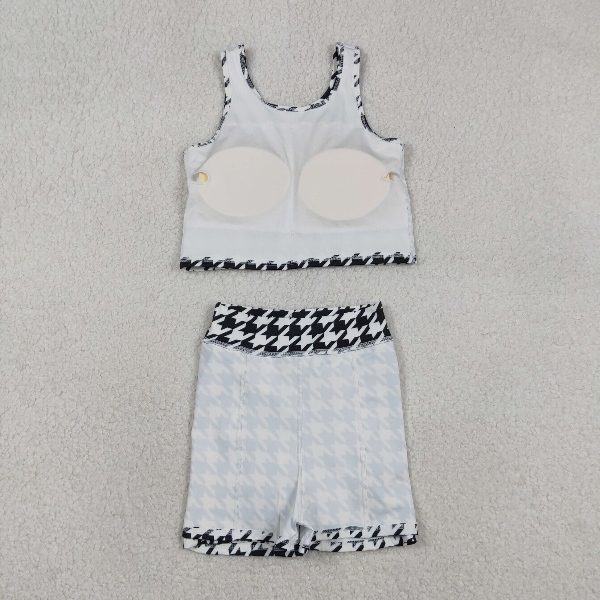 RTS NO MOQ(In Stock) GSD2858 Black and White Houndstooth Sleeveless Pants-Skirt Yoga Set