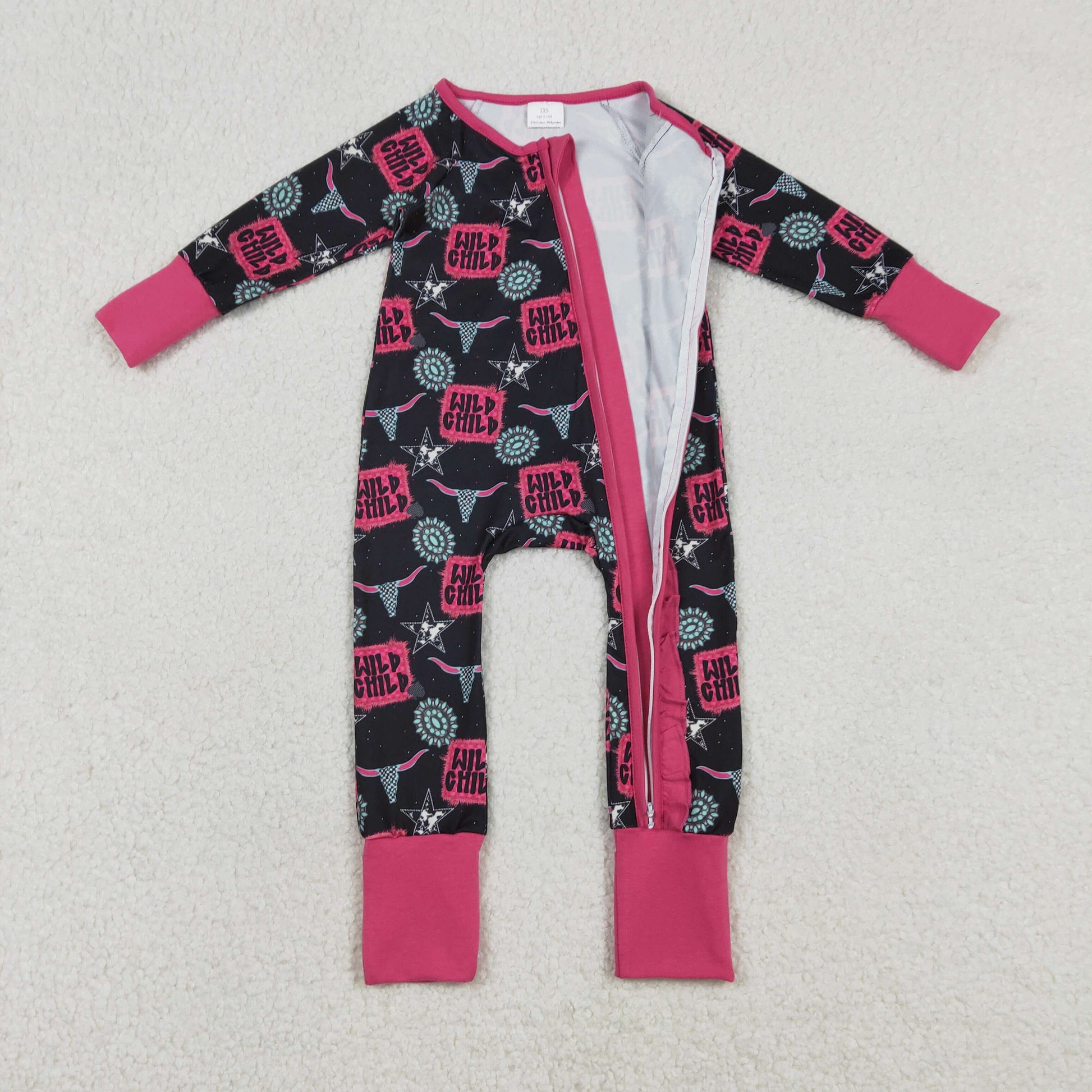 RTS NO MOQ(In Stock) Wild Child Gemstone Star High Mountain Bull Head Rose Red Lace Black Zipper Long-Sleeved Jumpsuit