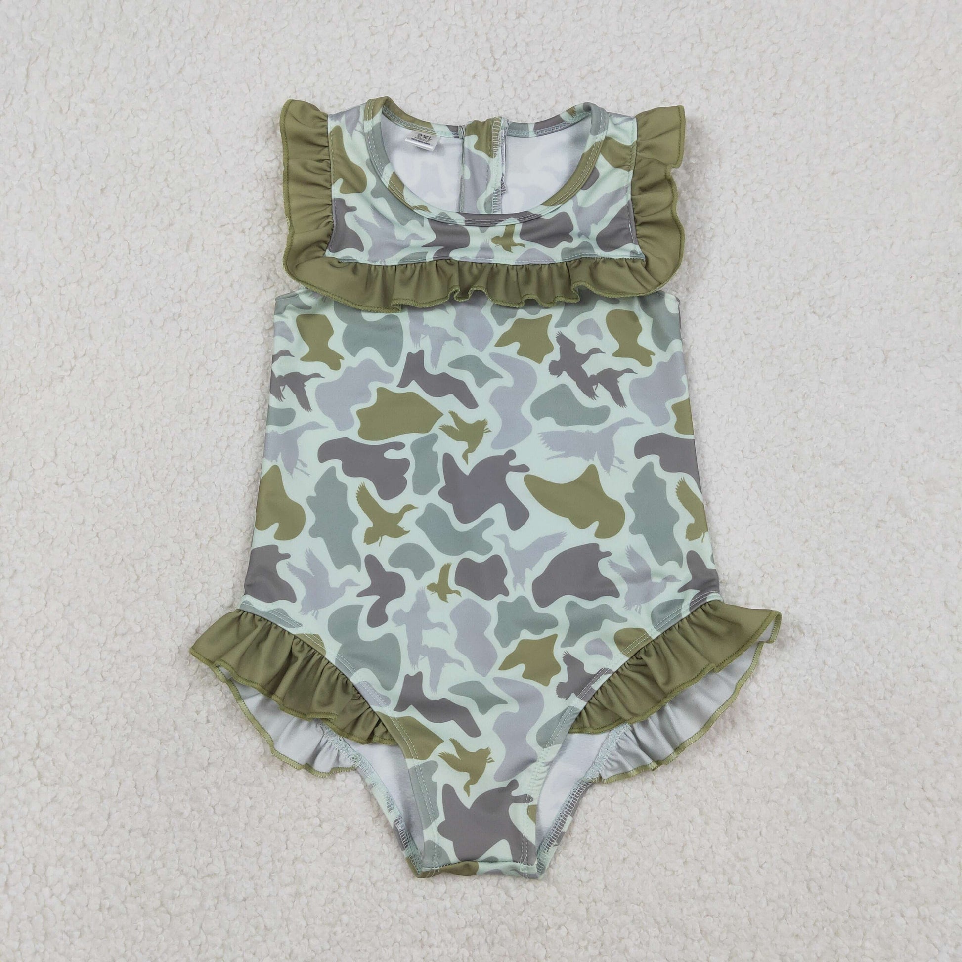RTS NO MOQ(In Stock) S0596 Duck Camouflage Green Lace Onesie
