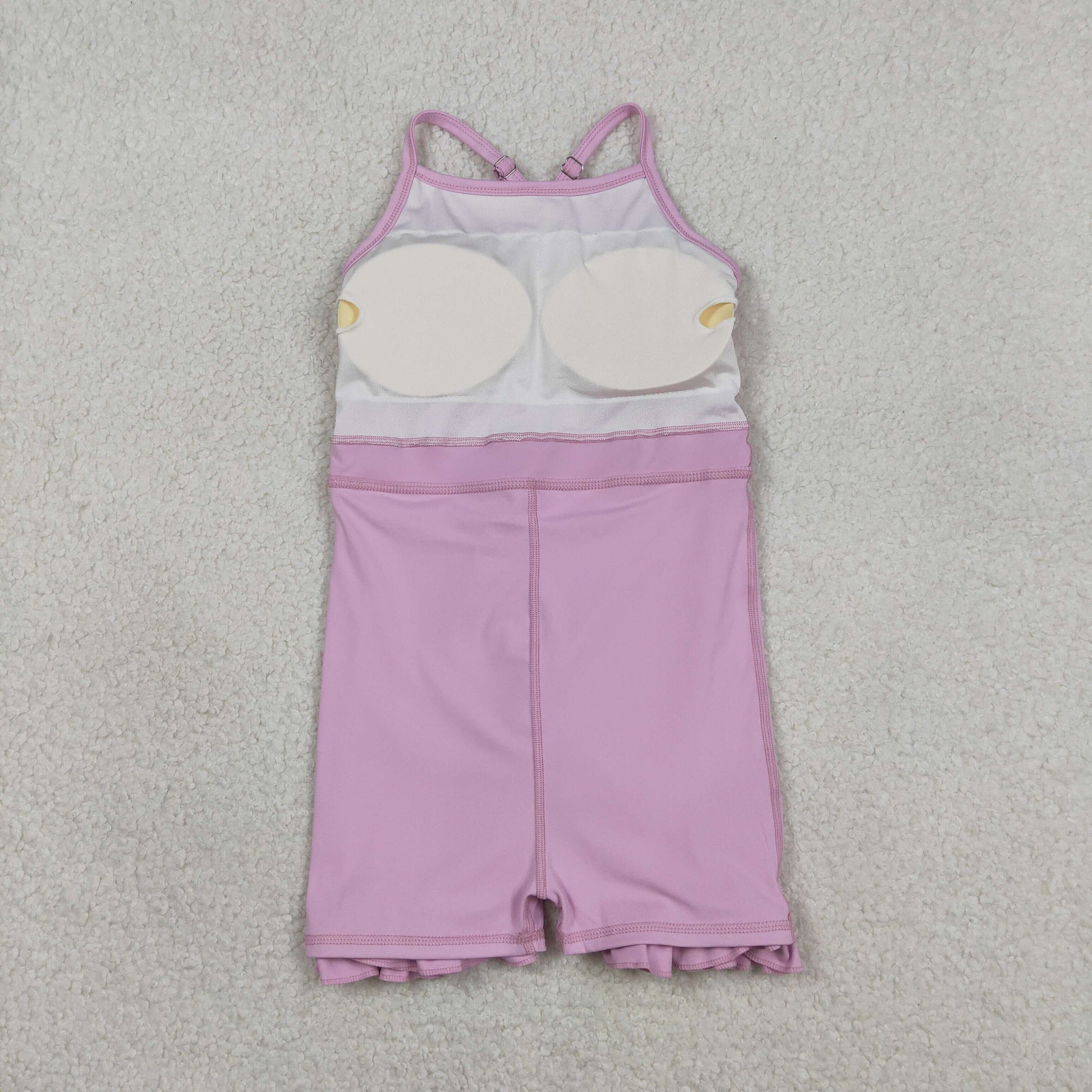 S0712 Kids Baby Girl Lavender Strap Yoga Ruffle Active Shorts Knee Length Dresses