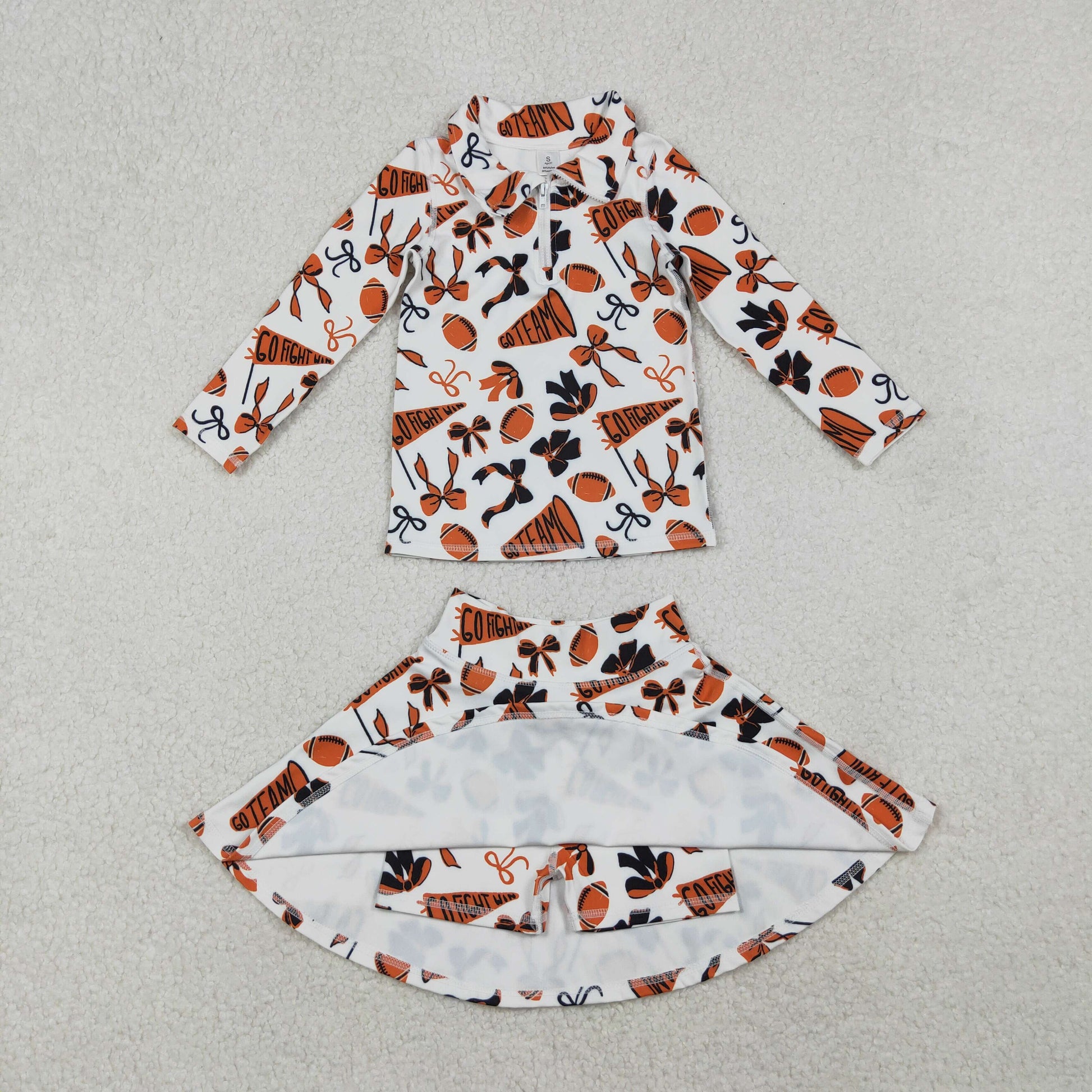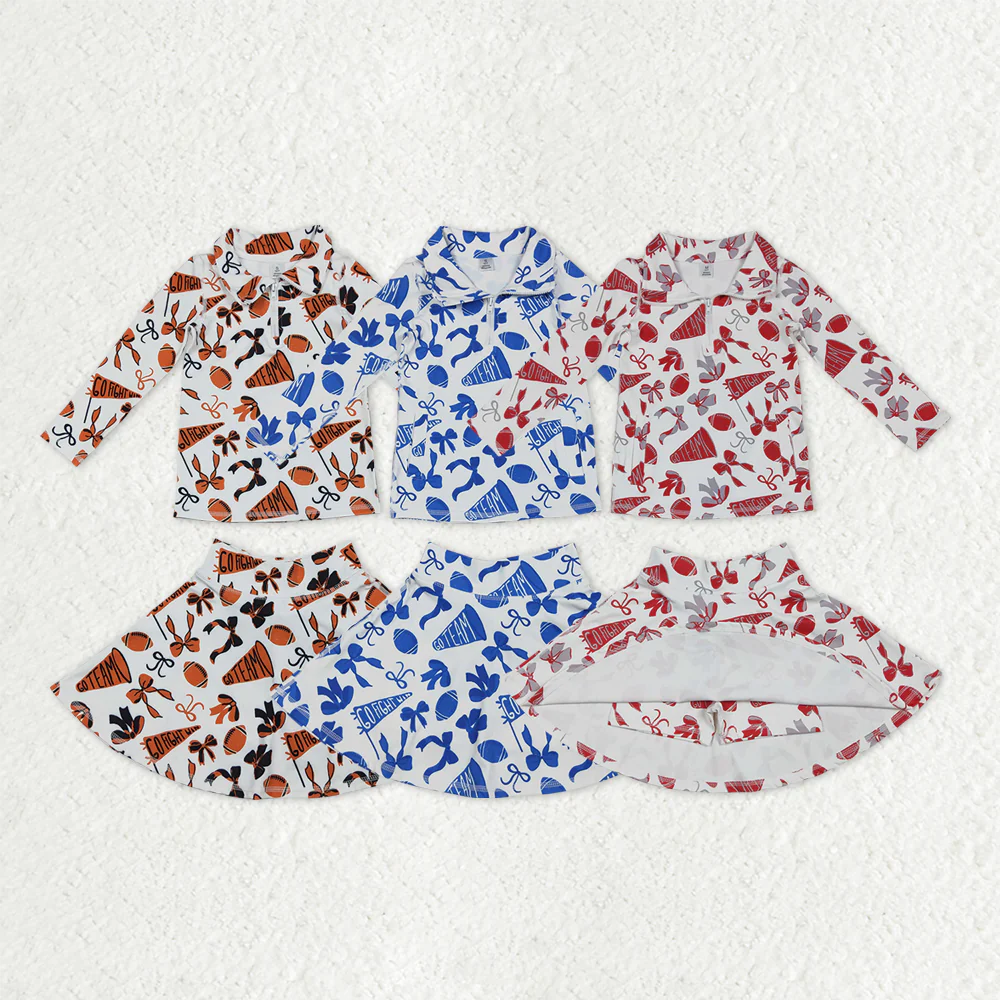 Sibling baby girl clothes Football Trumpet Bow Pattern long sleeve top Yoga Skirts sets