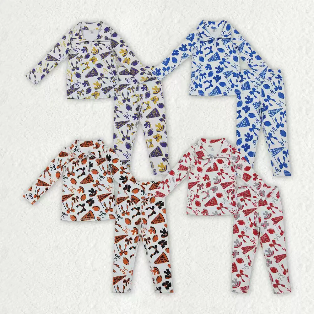 Sibling baby girl clothes Football Trumpet Bow Pattern long sleeve top Yoga pants sets