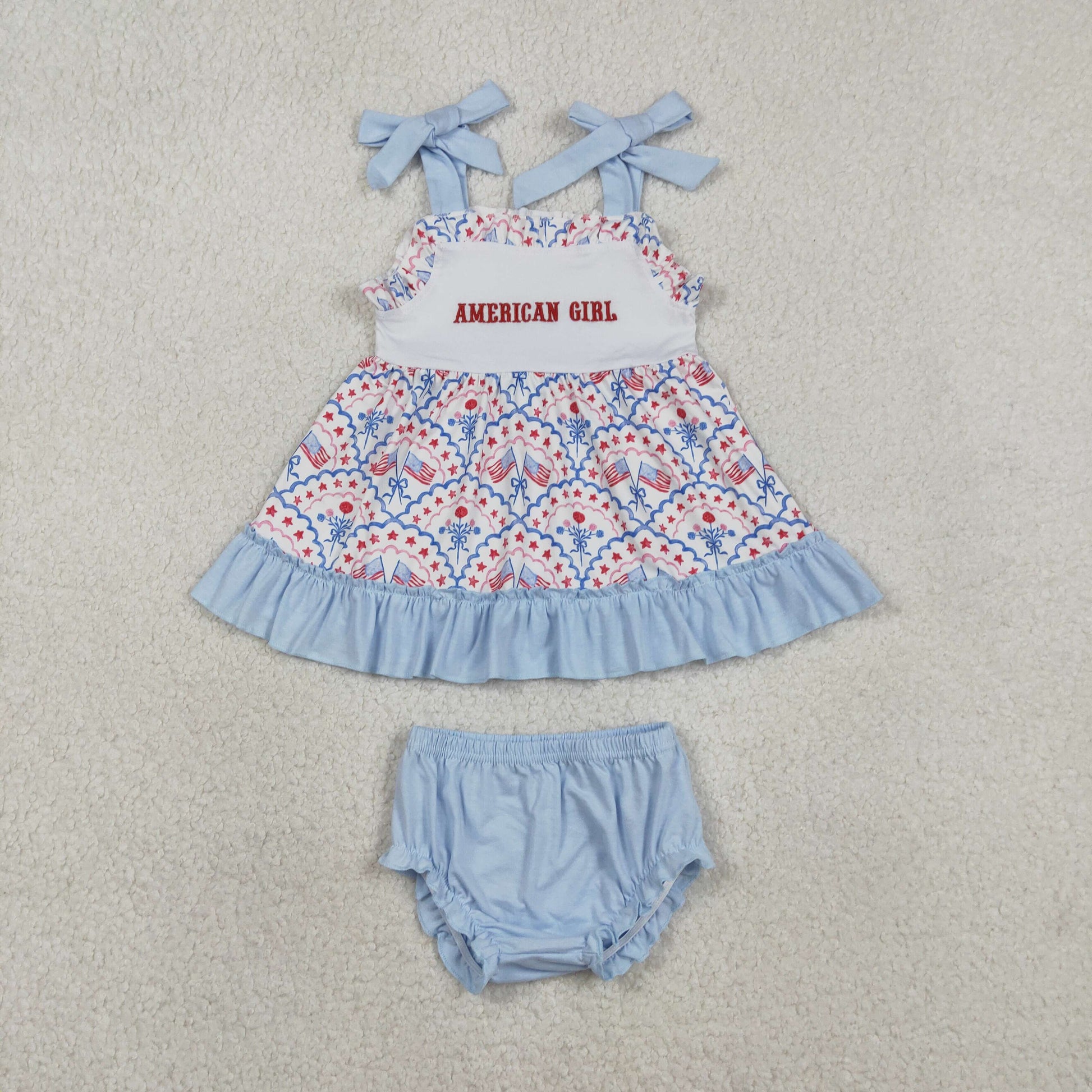 Sibling Baby girls clothes embroidery 4th of july shorts Sleeve dress and romper