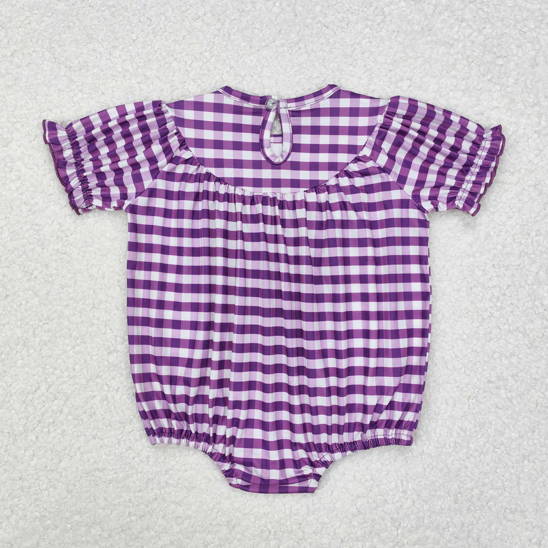SR2060 Baby Infant Girls Mardi Gras Purple Checkered Smocked Romper