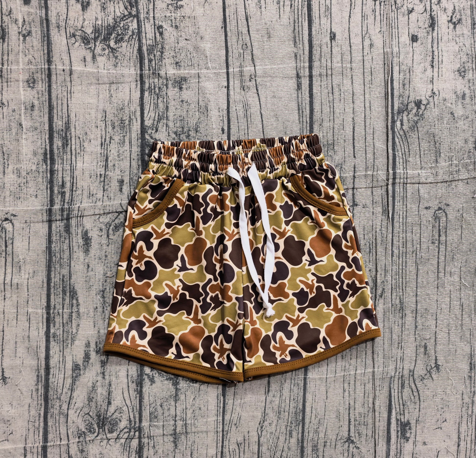 SS0673 Preorder IRL Baby Boy Olive Brown Ducks Camo Hunting Pockets Shorts Bottom